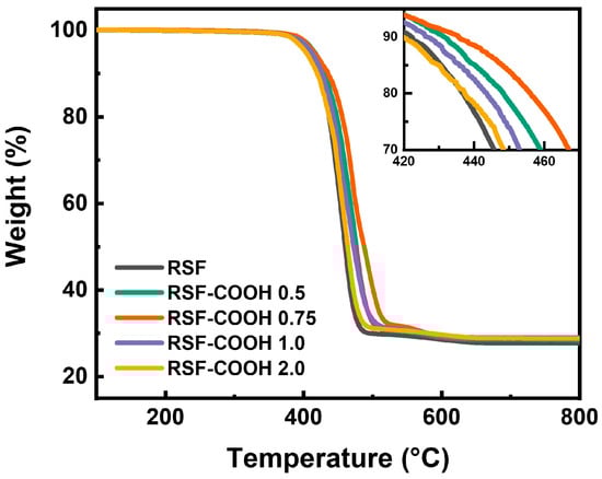 Figure 4a presents the DSC thermograms of the neat RSF and RSF-COOH composites, and the DSC data are listed in Table 2.