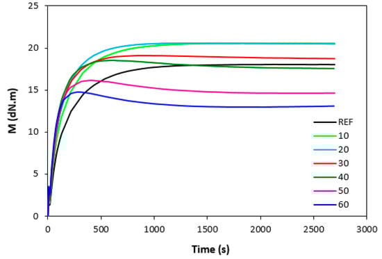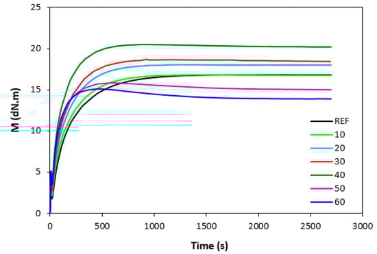 3.1. Influence of Lignosulfonate and Curing System Composition on Cross-Linking of Rubber Compounds