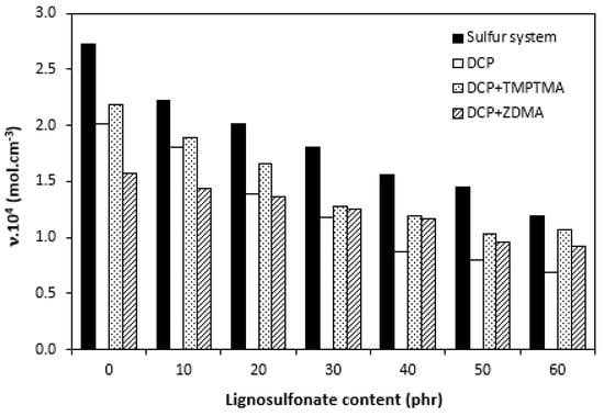 Application of Sulfur and Peroxide Curing Systems for Cross-Linking of Rubber Composites Filled with Calcium Lignosulfonate