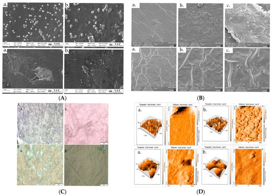 Polysaccharides, proteins, and lipids are the most common biopolymers used in the formation of edible films. Polysaccharides, for instance, are inexpensive and have good functional qualities, therefore they may be utilized as film-forming materials. Through hydrogen bonding, polysaccharide molecules may connect and form a continuous network []. Agar, which is commercially extracted from seaweeds, is one of the most typical polysaccharide basic materials that has been thoroughly investigated [,,]. Pectin, on the other hand, is a significant structural component of cell walls that is mostly composed of partly methyl esterified poly (α-d-galacturonic acid) with rhamnose inserts in the backbone and neutral sugar side chains. It is readily biodegradable and water soluble []. When combined with natural bioactive substances, edible films containing pectin have antibacterial effects against foodborne pathogens []. Blending pectin and agar to generate a hybrid composite improves the physical characteristics of the film while overcoming the limitations of each polymer [].