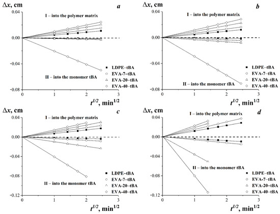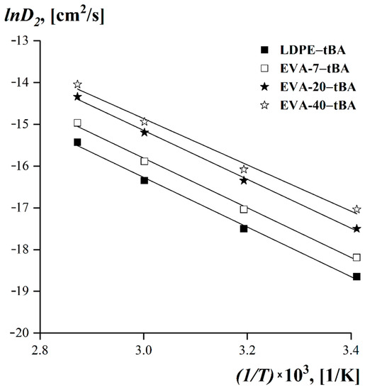3.4. Diffusion in tBA-(LDPE or EVA) Systems