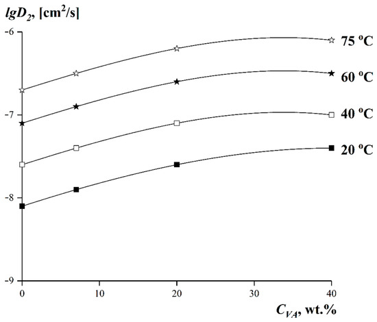 | System | Texp, [°C] | lgD2, [cm2/s] | System | Texp, [°C] | lgD2, [cm2/s] |
