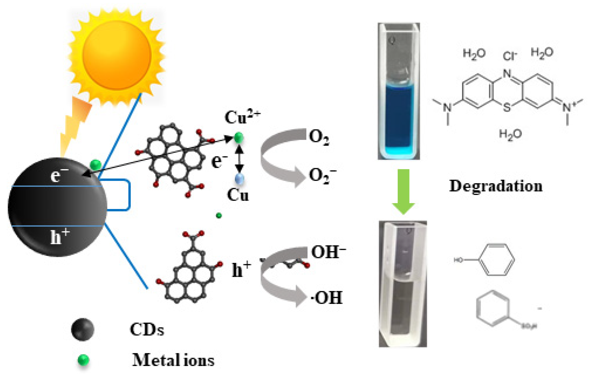 - Akbar, K.; Moretti, E.; Vomiero, A. Carbon dots for photocatalytic degradation of aqueous pollutants: Recent advancements. Adv. Opt. Mater. 2021, 9, 2100532. [Google Scholar] [CrossRef]
