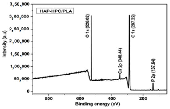 The binding energy of XPS spectra peak for HAP-HPC/PLA.