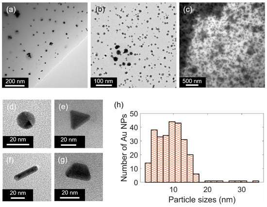 - Zabetakis, K.; Ghann, W.E.; Kumar, S.; Daniel, M.-C. Effect of high gold salt concentrations on the size and polydispersity of gold nanoparticles prepared by an extended Turkevich–Frens method. Gold Bull. 2012, 45, 203–211. [Google Scholar] [CrossRef]