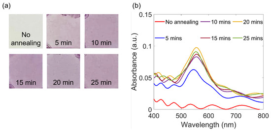 - Saikia, R.; Gogoi, P.; Barua, P.K.; Datta, P. Spectroscopic studies on Ag/PVA nanocomposite thin films prepared by thermal annealing process. Int. J. Nanosci. 2011, 10, 427–432. [Google Scholar] [CrossRef]