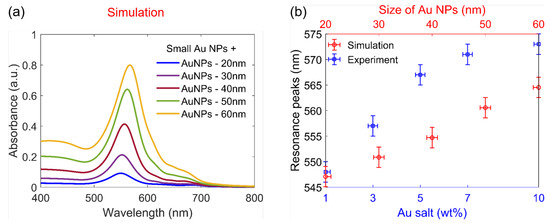 - Cheng, L.; Zhu, G.; Liu, G.; Zhu, L. FDTD simulation of the optical properties for gold nanoparticles. Mater. Res. Express 2020, 7, 125009. [Google Scholar] [CrossRef]