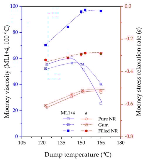 3.1. Mooney Viscosity and Mooney Stress Relaxation