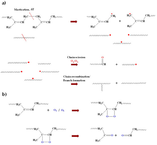 - van. Amerongen, G.J. Oxidative and nonoxidative thermal degradation of rubber. Rubber Chem. Technol. 1956, 29, 857–879. [Google Scholar] [CrossRef]
