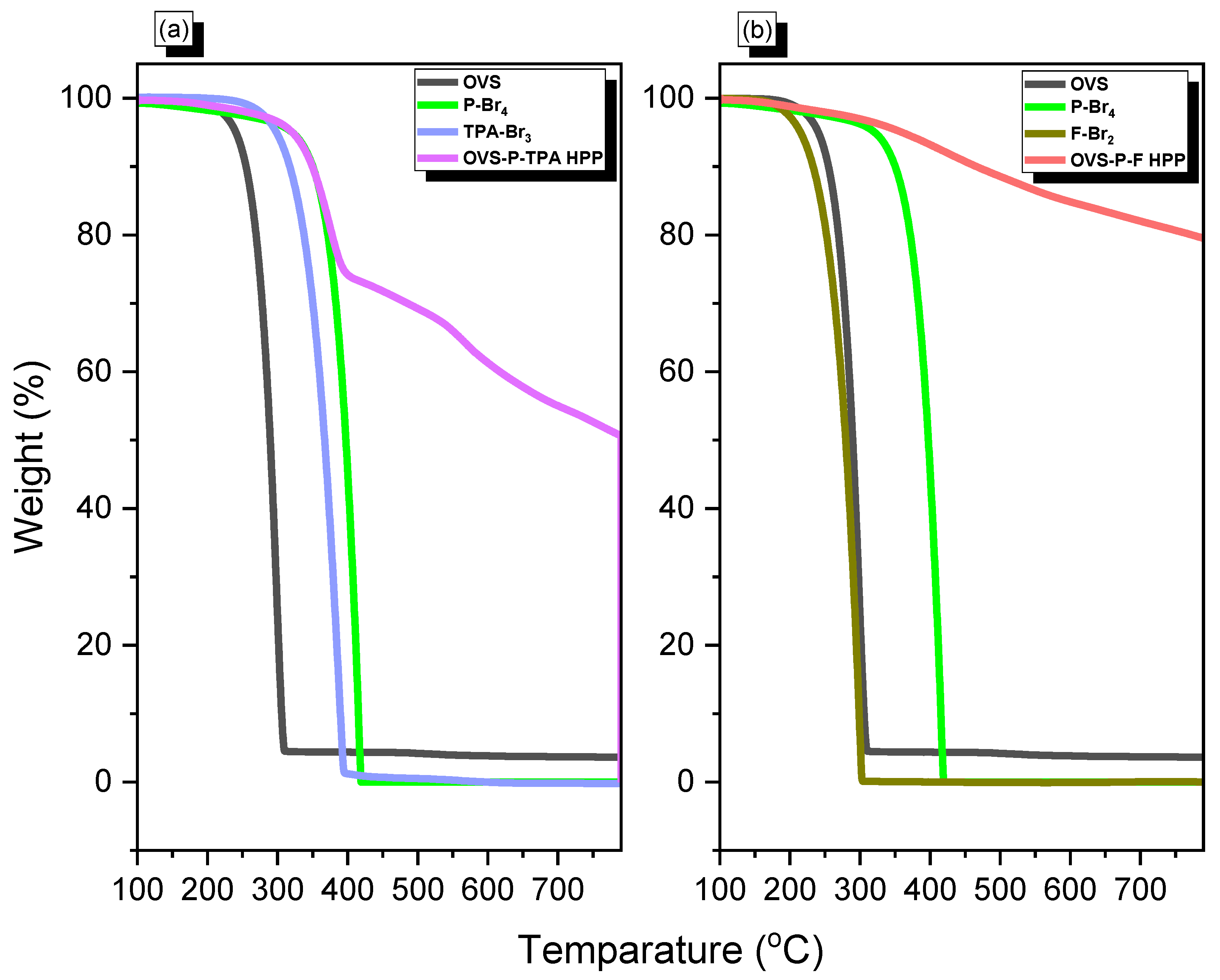 2.5. Synthesis of OVS-P-TPA HPP and OVS-P-F HPP