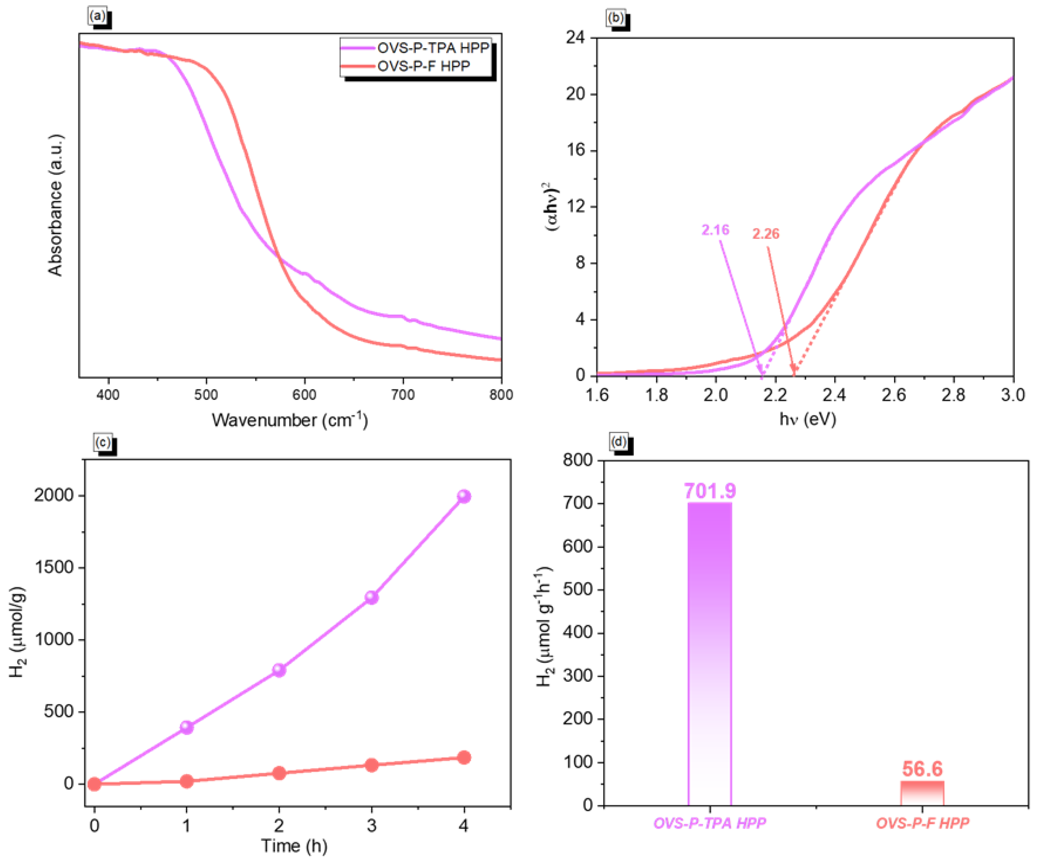 3.3. Photocatalytic Performance of OVS-P-TPA HPP and OVS-P-F HPP for H2 Production