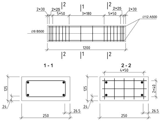 At the first stage of the research program, 16 reinforced concrete columns were made. All samples had sections of 250 × 125 (h) mm and a length of 1200 mm.