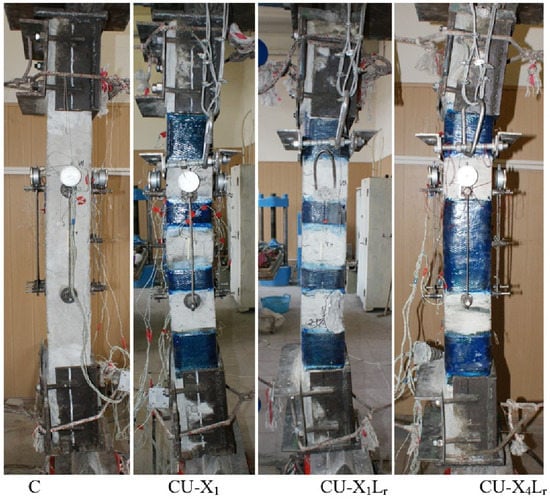 - Manos, G.C.; Katakalos, K.B. Reinforced Concrete Beams Retrofitted with External CFRP Strips towards Enhancing the Shear Capacity. Appl. Sci. 2021, 11, 7952. [Google Scholar] [CrossRef]