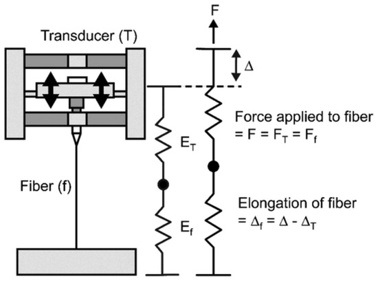 In the tensile test method, the polymer nanofiber is primarily used to withstand axial loads. Tensile tests [103,113] are most appropriate to examine the mechanical behavior of individual polymer electrospun nanofibers. The tensile test system includes a specimen elongation measurement tool, a load, and an actuator. Tensile tests are carried out on nano-tensile/micro-tensile equipment or atomic force microscopy-based system to examine the property of interest, i.e., Young’s modulus, tensile strength, yield stress, and strain at fracture. These tests entail determining the applied load and fiber elongation of a known cross-sectional area [101].