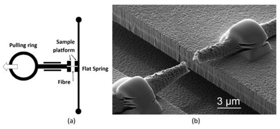- Tan, E.; Lim, C. Novel approach to tensile testing of micro-and nanoscale fibers. Rev. Sci. Inst. 2004, 75, 2581–2585. [Google Scholar] [CrossRef]