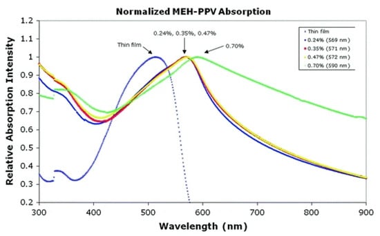 - Balderas, U.; Falcony, C.; Moggio, I.; Arias, E.; Mondragón, M. A photoluminescence study of electrospun fibers of conjugated poly [2-methoxy-5-(2′-ethylhexyloxy)-1, 4-phenylenevinylene] blended with poly (9-vinylcarbazole). Polymer 2013, 54, 2062–2066. [Google Scholar] [CrossRef]