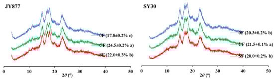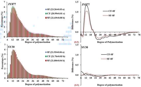 | JY877 | 0F | 53.12 ± 0.22 b | 19.58 ± 0.43 b | 27.30 ± 0.21 c | 2.71 ± 0.07 b |