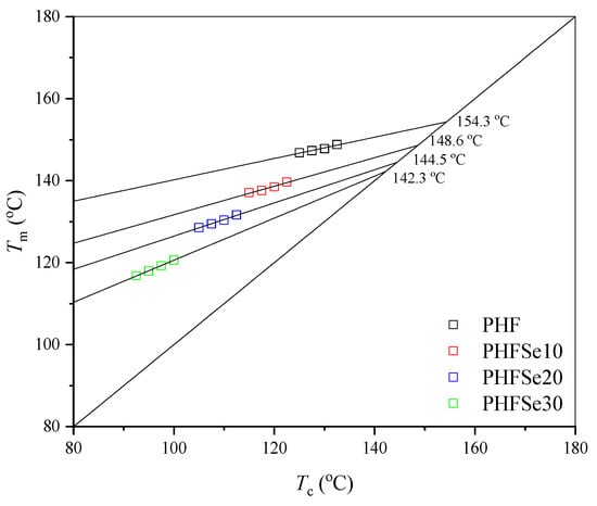 The following supporting information can be downloaded at: https://www.mdpi.com/article/10.3390/polym15010085/s1, Figure S1: Melting behavior of (a) PHF, (b) PHFSe10, (c) PHFSe20, and (d) PHFSe30 after isothermal crystallization at indicated Tcs.