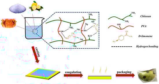 - Lan, W.; Wang, S.; Chen, M.; Sameen, D.E.; Lee, K.; Liu, Y. Developing poly (vinyl alcohol)/chitosan films incorporate with d-limonene: Study of structural, antibacterial, and fruit preservation properties. Int. J. Biol. Macromol. 2020, 145, 722–732. [Google Scholar] [CrossRef]