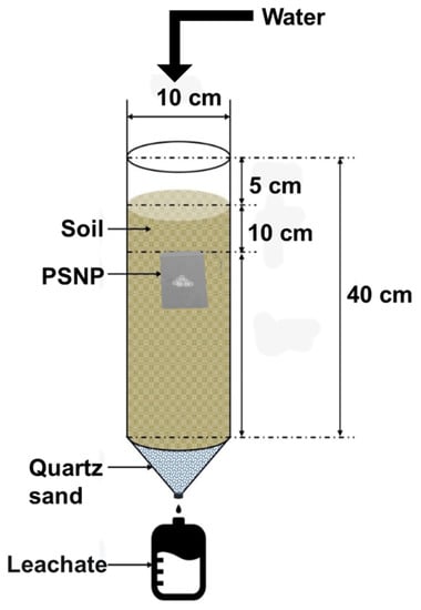 The device diagram for soil available P migration was shown in Figure 1. Loaded the air-dried soil into the soil column tube (height 40 cm, diameter 10 cm). Before loading the soil, lay a layer of clean quartz sand (diameter of 2~3 mm) washed with deionized water and dried at the bottom of the soil column first, then loaded the soil to 15 cm away from the top of the soil column, and then put in 0.5 g fertilizer packed with 200-mesh nylon net bag. The treatment was as follows: PSNP and ADP with the same amount of P were added, and a blank treatment without fertilizer (CK) was also set up. The soil continued to be loaded to a position 5 cm away from the top of the soil column to form a simulated soil column about 35 cm high. A 500 mL beaker was placed at the bottom of the soil column to collect leachate. Deionized water was added from the top (a small amount of about 10 mL at a time) until the leachate flowed out at the bottom, so that the soil in the soil column was fully moistened. Then, 200 mL of deionized water was added every 15 days (a small amount of about 10 mL at a time). After 90 days of incubation, the average available P content of the soil column at different depths (0–10 cm, 10–20 cm, 20–30 cm) was measured, and the migration behavior of soil available P was evaluated according to the data.