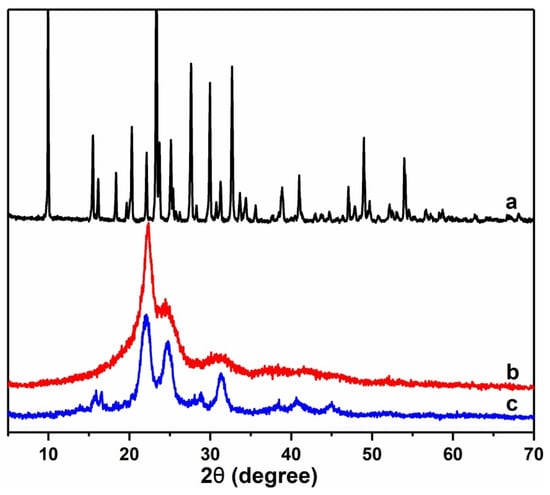 XRD patterns of urea phosphate (a), UF (b), and PSNP (c).