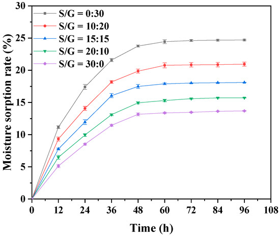 Moisture absorption of pullulan soft films with different S/G ratios.