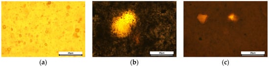 The optical images of the surfaces of the nanocomposites we prepared are displayed in Figure 2. It can be seen that the clustering of the MO nanoparticles took place, because the micron-sized aggregates were registered. This indicates the certain heterogenization of the material. However, the results of the study of samples by SEM, as well as strong effects of the nanofiller on the functional characteristics of the nanocomposites we observed, convincingly indicate that a large part of the nanofiller is uniformly distributed within the PI matrix.