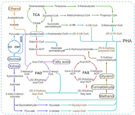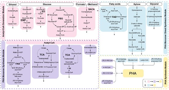 - Mitra, R.; Xu, T.; Chen, G.-Q.; Xiang, H.; Han, J. An updated overview on the regulatory circuits of polyhydroxyalkanoates synthesis. Microb. Biotechnol. 2022, 15, 1446–1470. [Google Scholar] [CrossRef]