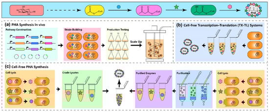 Dong, H.; Yang, X.; Shi, J.; Xiao, C.; Zhang, Y. Exploring the Feasibility of Cell-Free Synthesis as a Platform for Polyhydroxyalkanoate (PHA) Production: Opportunities and Challenges. Polymers 2023, 15, 2333. https://doi.org/10.3390/polym15102333