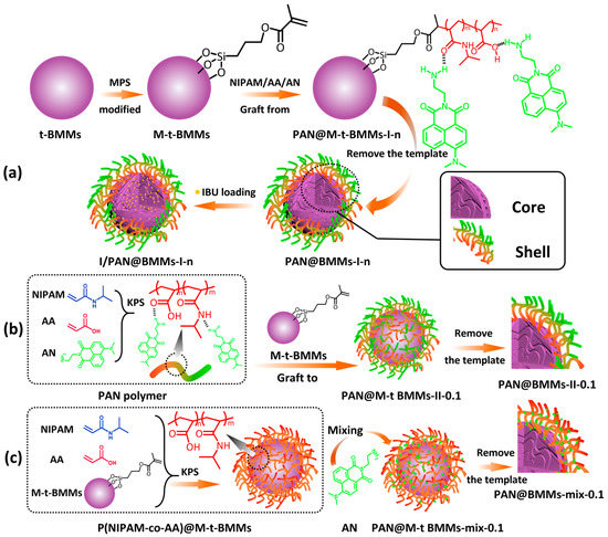 2.3. Synthesis of PAN@M-t-BMMs-m-n