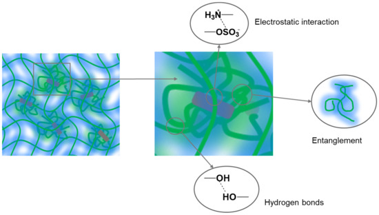 Thus, when CRG interacts with CNWs in an aqueous solution (pH = 5.3), a complex biphasic hydrogel system is formed consisting of a three-dimensional network of CRG macromolecules with CNWs entrapped within (Figure 3).