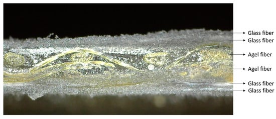 The market demand for lightweight, strong, and environmentally friendly materials makes every producer continue to innovate to answer these challenges by using natural products as raw materials for their manufacturing [1,2,3,4,5,6,7,8]. One of the potential natural resources whose utilization still needs to be further developed is the Gebang plant, Latin name Corypha Utan. This plant produces fiber from its leaves that is commonly called agel fiber. These fibers are still limited to being used as raw materials for handicrafts such as bags, webbing, hats, furniture, ropes, etc. This natural fiber has the potential to increase its utilization by making it a raw material in the manufacturing of composites so that it has more value to increase income and utilize the local natural product [6,9,10,11,12,13]. Currently, very few studies use agel fibers as composite reinforcement. In its development, many studies have been carried out on natural fibers, which show that natural fibers can not only be used for handicraft products. Natural fibers are expected to replace the role of glass fibers in automotive manufacturing components [14]. Natural fibers can be applied in material engineering as reinforcement in composite materials because they have advantages such as flexibility, tensile strength, and suitable toughness [15]. The implementation of natural fibers can also be combined with synthetic fibers to produce hybrid composites. Hybrid materials are increasingly widespread and offer advantages, especially in the automotive sector [16,17,18,19,20,21,22,23].