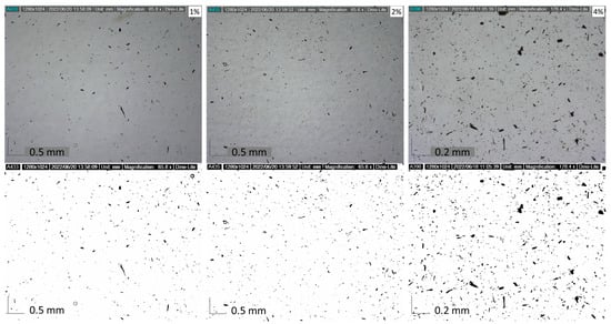 Dispersion, shape, and concentration of filler in each variation affect the strength of the composite. The filler dispersion phenomenon can be observed using the image and video output carried out with a Dinolite digital microscope. The observed filler dispersion phenomenon can be used as a reference for the strength of the specimen. Observations also include phenomena that occur in the specimen. Figure 9 shows the shape and distribution of filler in the matrix for each variation. The non-uniform filler will affect the strength of the composite. Figure 8c shows the filler dispersion of 4%, more dense than the 1% and 2% filler. The agglomeration phenomenon has been found in the 4% filler. The several big black dots are marked as an agglomeration of 4% activated carbon filler in the matrix. The dispersion of 1% and 2% filler is more uniform, marked by black dots (activated carbon filler) spread evenly in the matrix. Hence, adding 1% or 2% filler can reduce the chance of the agglomeration phenomenon formed by activated carbon filler.
