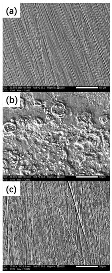 Multiple surface characterization methods were employed in this study. High-resolution optical microscopy (Leica, Germany) was used for surface macrographs observation. SEM (Thermo Fisher Scientific, Waltham, MA, USA) was used to characterize the sample micro-morphologies. The operation voltage ranged from 3 kV to 15 kV. The functional groups of different samples were analyzed using FT-IR (PerkinElmer, Waltham, MA, USA).