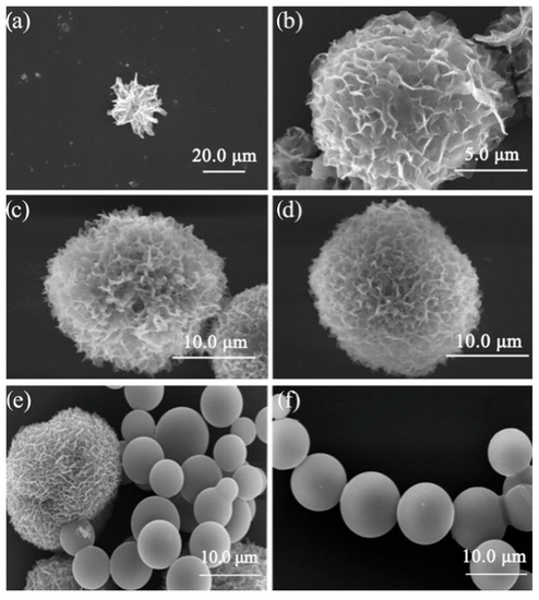 - Wang, Y.; Tu, M.; Li, X.; Zhang, J.; Cheng, J. Facile synthesis of marigold-like microspheres from urea formaldehyde with controllable morphology. Mater. Lett. 2015, 145, 27–29. [Google Scholar] [CrossRef]