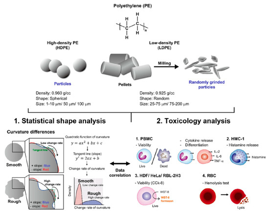 - Choi, D.; Hwang, J.; Bang, J.; Han, S.; Kim, T.; Oh, Y.; Hwang, Y.; Choi, J.; Hong, J. In vitro toxicity from a physical perspective of polyethylene microplastics based on statistical curvature change analysis. Sci. Total Environ. 2021, 752, 142242. [Google Scholar] [CrossRef] [PubMed]
