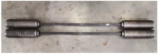 Fatigue-bearing capacity experiments of CFRP cables were performed on the bonding anchoring system. The fabricated CFRP cables for fatigue testing consisted of 37 CFRP rods (with a smooth surface and a diameter of 4 mm), and the gauge length of the cable was 1.0 m. The CFRP rods were diverged and arranged in an inner cone-shaped bonding anchor with a bonding length of 300 mm, and the maximal bending angle was set to 5.4°; the potting compound employed in the anchoring system was identical to that mentioned in Section 2.2. The fabricated CFRP cables are shown in Figure 2. More detailed design and fabrication information on the adopted bending anchoring system is available in the Refs. [17,18].