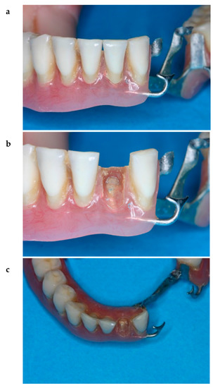 - Patil, R.; Juszczyk, A.S.; Radford, D.R.; Clark, R.K.F. Is the bond between acrylic resin denture teeth and denture base resin stronger if they are both made by the same manufacturer? Eur. J. Prosthodont. Restor. Dent. 2010, 18, 39–41. [Google Scholar]