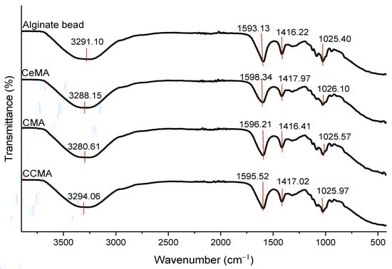 3.1. Synthesis and Characterization of CeMA, CMA, and CCMA