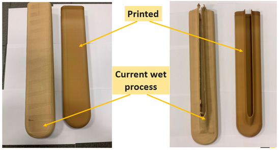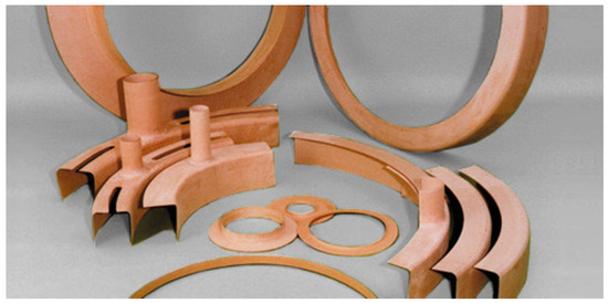 Cellulose-based formulations are another form of the materials used broadly as HV electrical insulation, and power transformers are the product where, in addition to transformer oil, such functional materials play an important role as the insulating media. Various forms of cellulose materials can be found in transformers, and different forms of materials are produced. Pressboard and presspahn are key materials in the manufacturing of transformer insulation components. They are manufactured using the purest cellulose extracted from long-fibered coniferous trees, additional binding agents and a pressing process. From this process, the obtained pressboard is characterized by high mechanical strength and ability to be impregnated with transformer oil, assuring very good dielectric performance [10,11]. Due to the variety of shapes and sizes required, very often, transformer insulation components are manufactured from wet cellulose pulp using metallic molds.