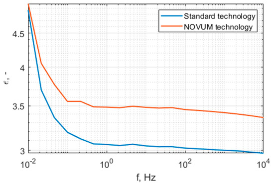 Permittivity spectrum for standard-technology and N28 technology materials.