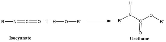 Urethane formation from the reaction of an isocyanate with a hydroxyl functional group.