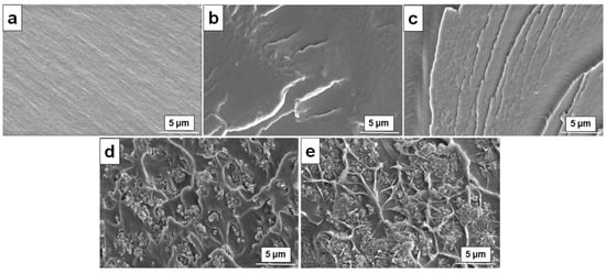 SEM micrographs of the PVA/OA-0 (a), PVA/OA-1 (b), PVA/OA-2 (c), PVA/OA-3 (d), and PVA/OA-4 (e).