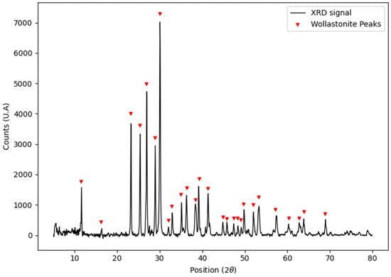 X-ray diffractogram of the wollastonite particles used to generate the compound for filament manufacturing.