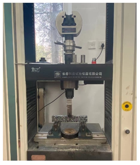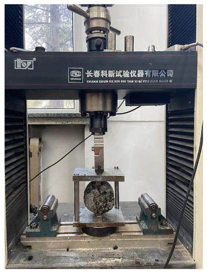 For the evaluation of the low-temperature performance of SFPM, the evaluation method of common asphalt mixtures, i.e., the breaking strain bending test at −10 °C, was still used as the low-temperature performance evaluation indicator. Therefore, the AASHTO T283 bending test (shown in Figure 8) was used to test the low-temperature crack resistance of SFPM.