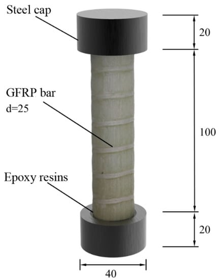 Reinforced concrete (RC) structures are severely affected by corrosive environments, leading to the corrosion of steel bars and reducing the strength of components. Compared to iron and steel materials, fiber-reinforced polymer (FRP) has the advantages of being lightweight [], high strength [,], insulation [,] and high corrosion resistance [,,] which dramatically increases the use of FRP bars including GFRP bar in civil structures, specifically in adverse and corrosive environment to maintain high safety and durability []. As an anisotropic material, the strength of GFRP is affected by many factors, such as fiber content, matrix type and manufacturing process. In order to ensure the safe and efficient use of GFRP, it is necessary to demonstrate its material properties through experiments.