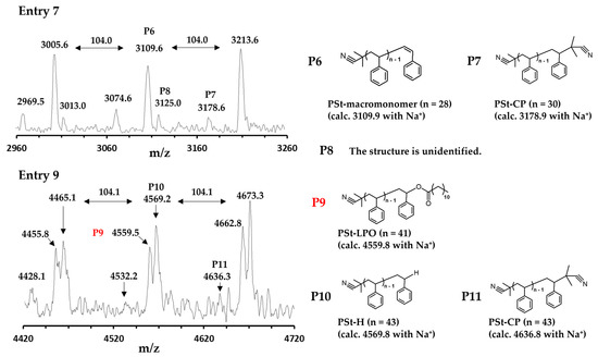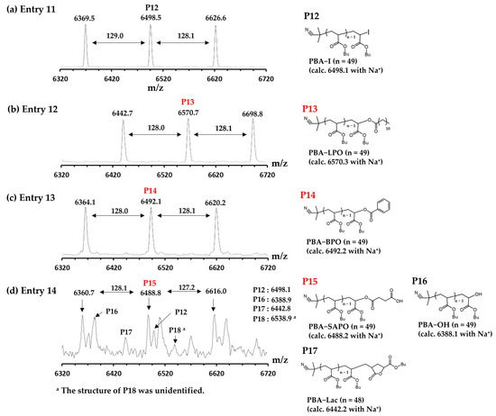 | Measured Polymer | Observed Polymer | Structure | N | m/z | Chain-End Modification ratio a [%] | |