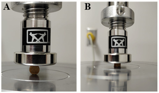 Mechanical properties evaluation of 8 wt.% GA GIC sample: (A) under compressive load for diametral tensile strength and (B) under compressive load for compressive strength.