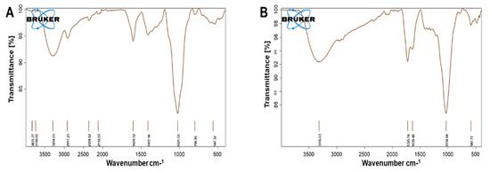 FTIR spectra: (A) of the unoxidized GA powder and (B) of the oxidized GA powder.