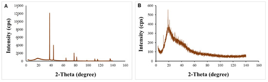 XRD patterns: (A) of the unoxidized GA powder and (B) of the oxidized GA powder.